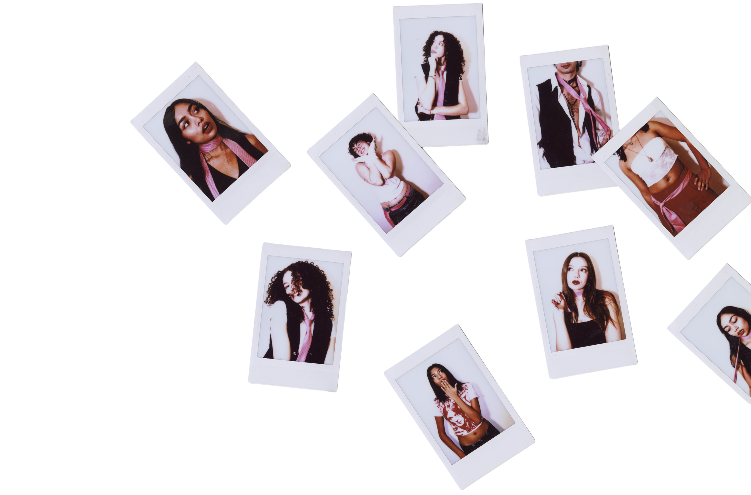 In this section, models were told to choose their own outfit incorporating the same pink tie. They arrived on set in an array of different colors, styles, and tie placements. From headband, to belt, to traditional necktie, individuality shone through and yet the common thread was just as central. When we borrow a piece of clothing and “make it our own,” we know that next week someone else can make it just as much theirs. To share clothes is to collectively deny the concept of exclusive ownership, a concept invented by and for capitalism. If capitalism is a game, then the way to “win” is to hoard assets and the “prize” is isolation. Opposing the “game,” even just by treating your closet as communal, creates and/or strengthens community within a society built to pull people apart.